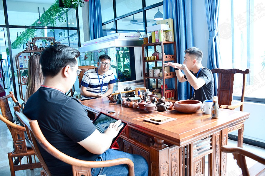 參觀結(jié)束后,在會(huì)議室,董事長(zhǎng)助理為廣英科技園的領(lǐng)導(dǎo)就此次項(xiàng)目進(jìn)行PPT講解。包括公司介紹、工程案例、設(shè)計(jì)詳解、施工流程。
